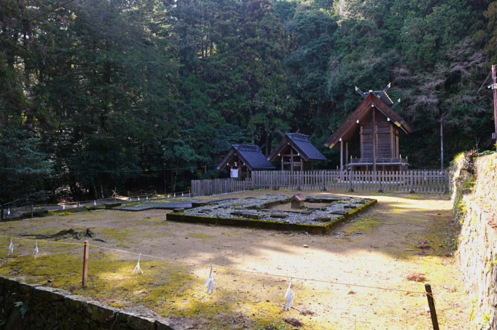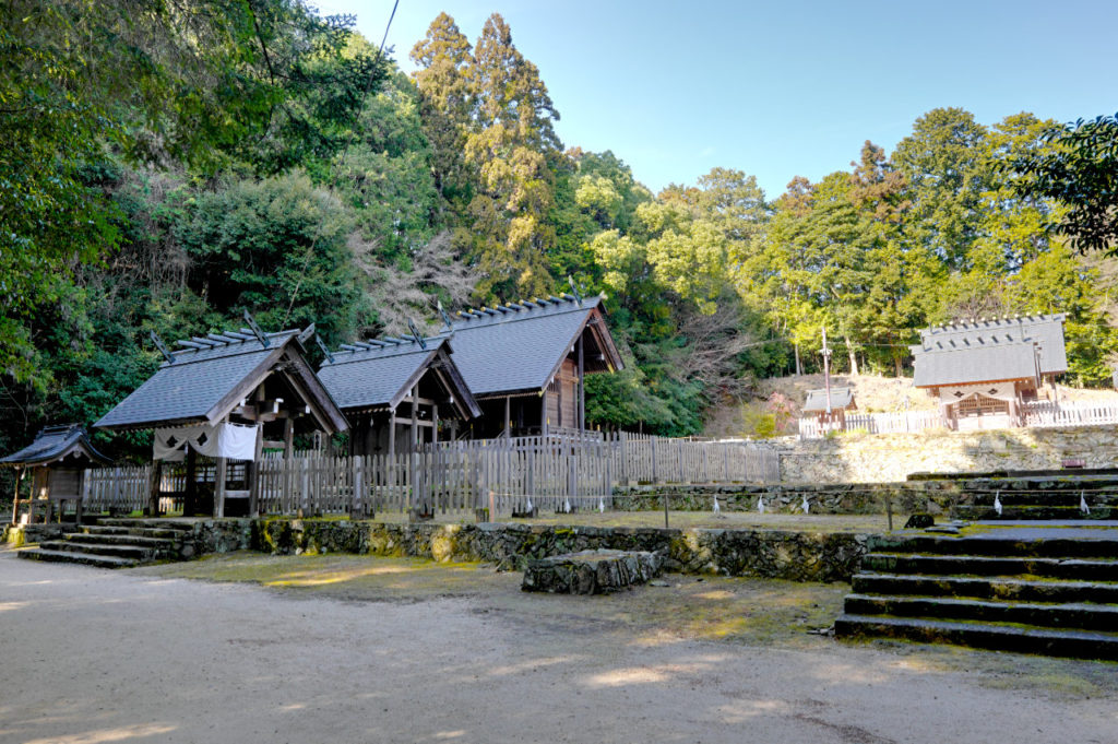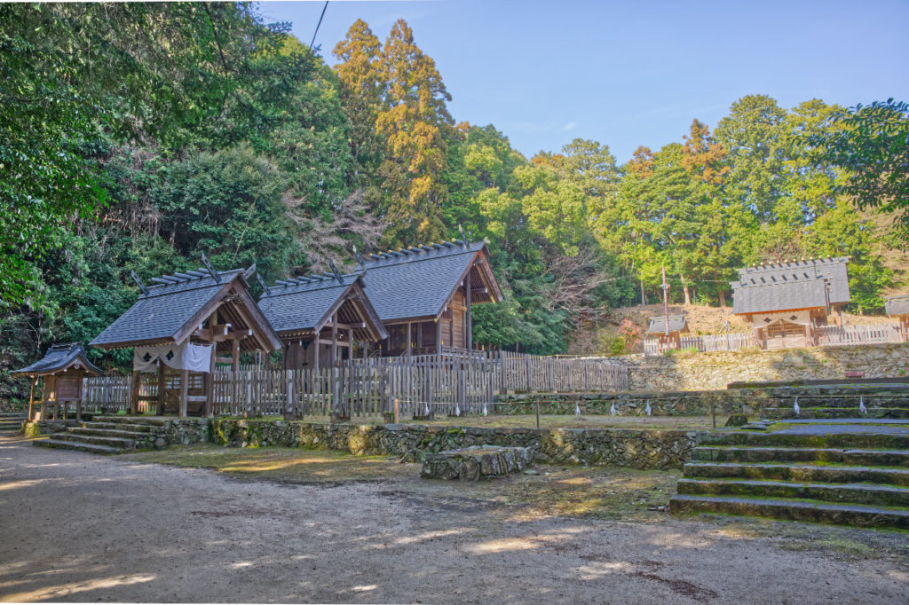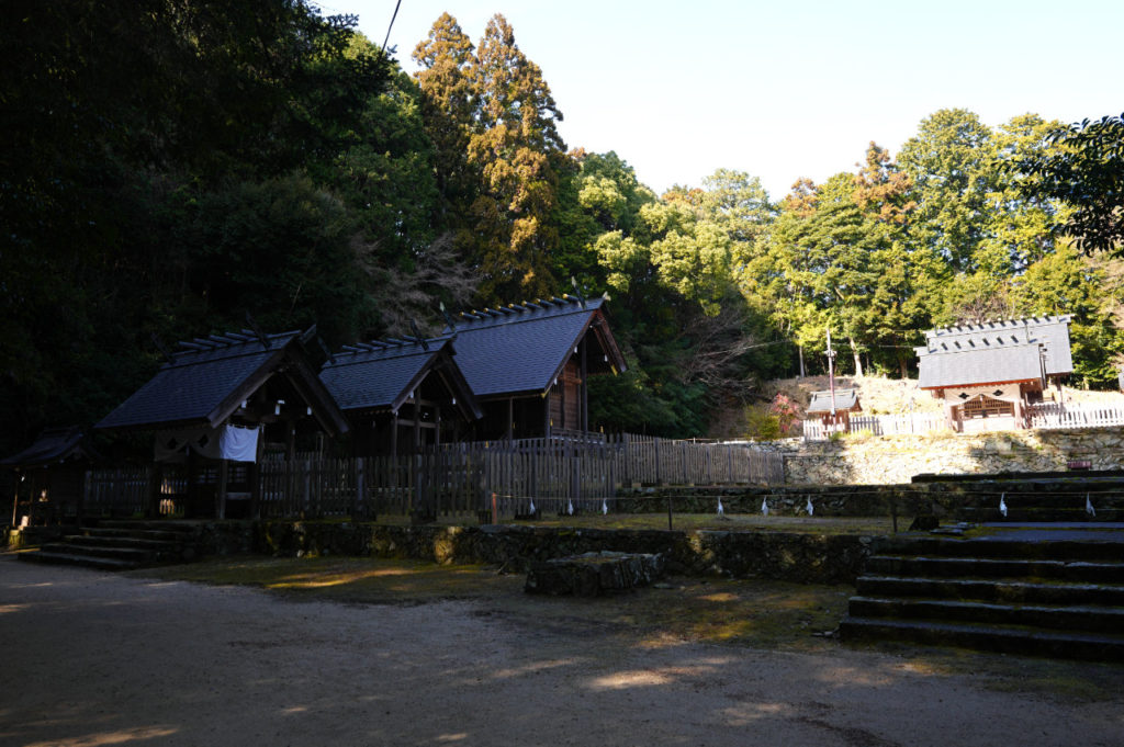 山のふもとにあって、駐車場からまず参道をのぼると社務所、そこから少し上がって多賀神社の境内、そしてそこからさらに山口大神宮への参道が続きます。