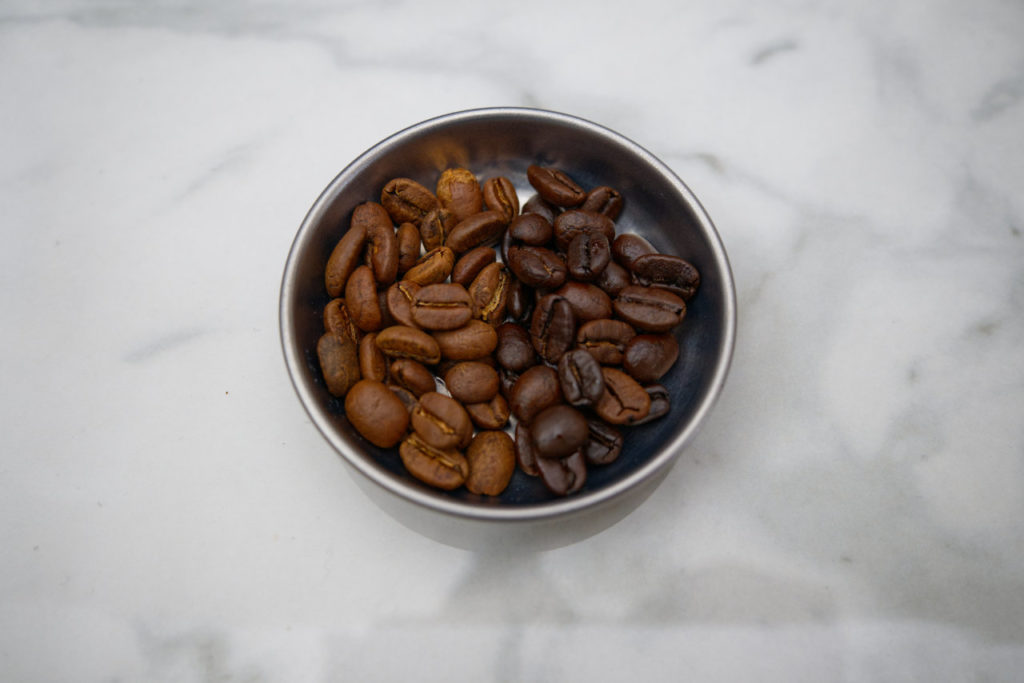 焙煎機から取り出してすぐはもっと油感があってテカテカして綺麗ですけど、冷却しているとすこし豆の中に戻るような感じテカリが落ち着きます。